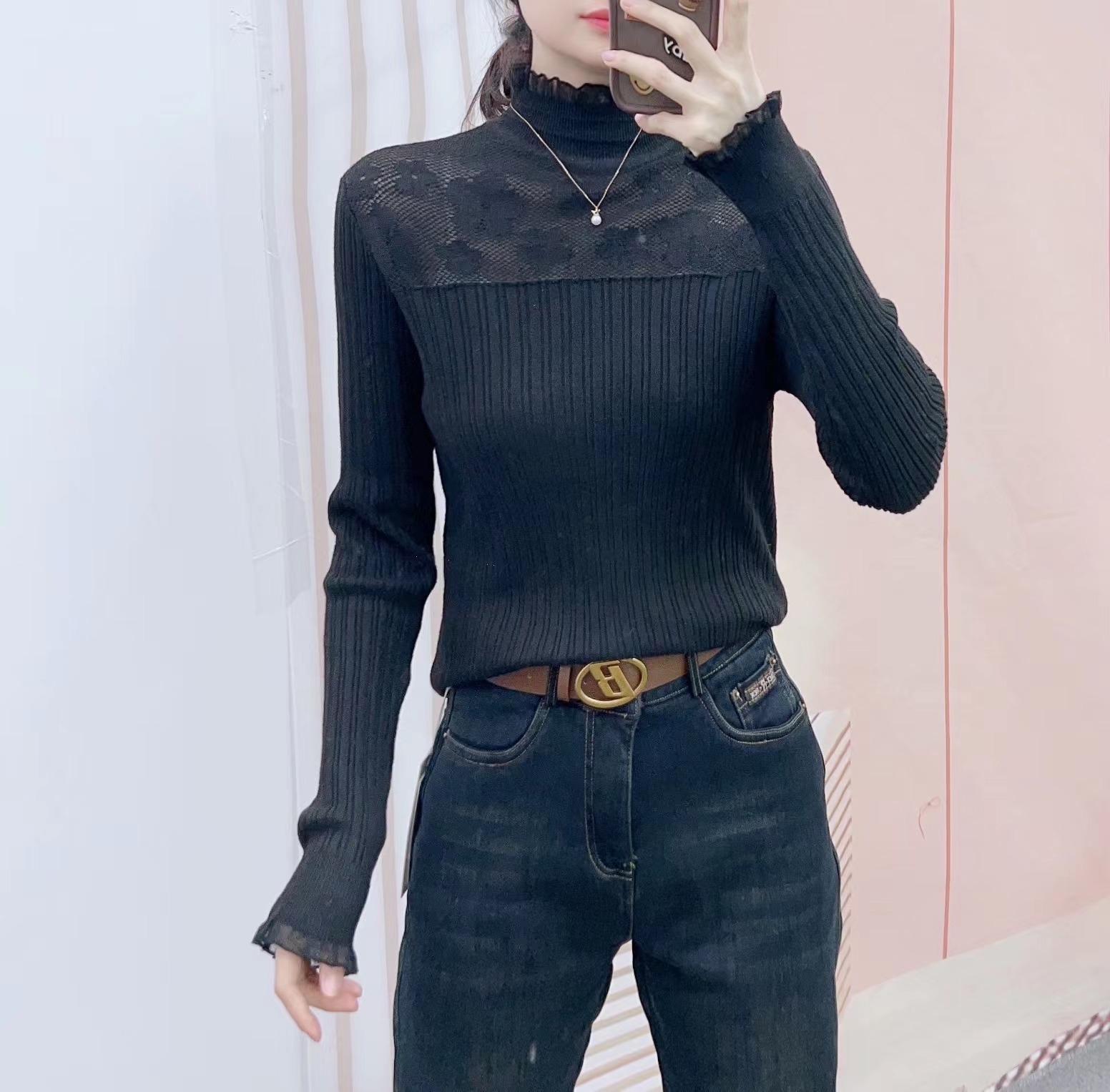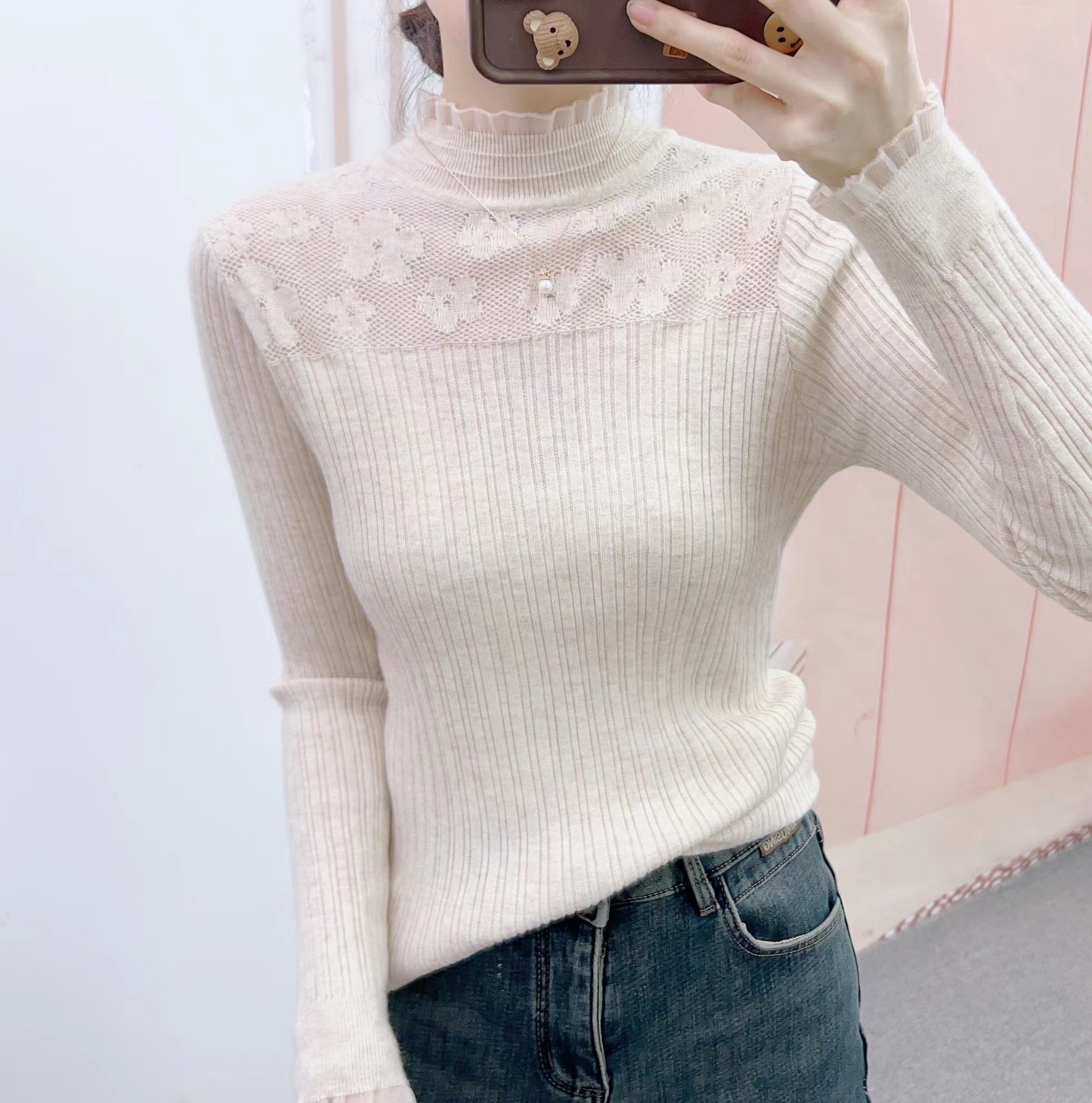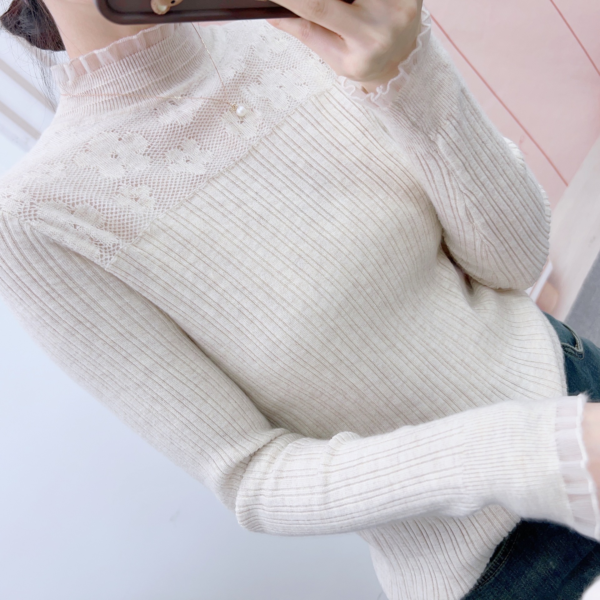 | nameOriginal | Lace top women's spring and autumn women's 2024 new style all-match long sleeve sweater pullover base shirt |