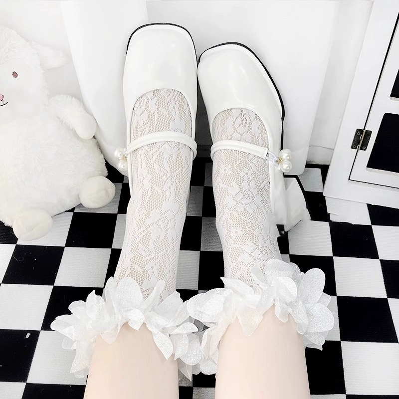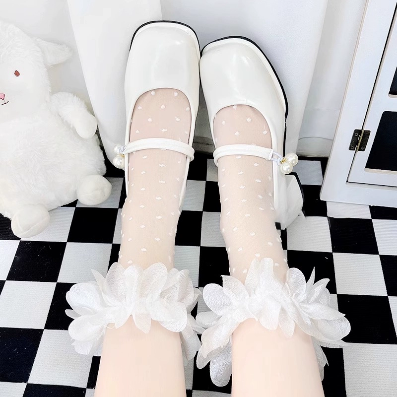 | nameOriginal | Lace transparent women's cute polka dot mid-calf socks Lolita |