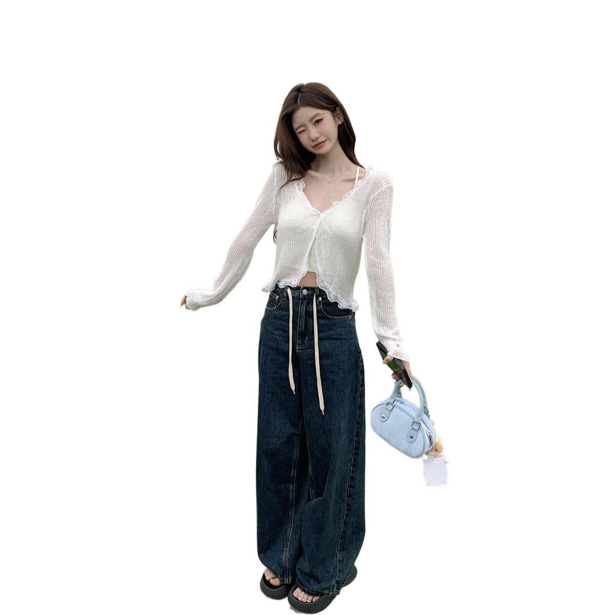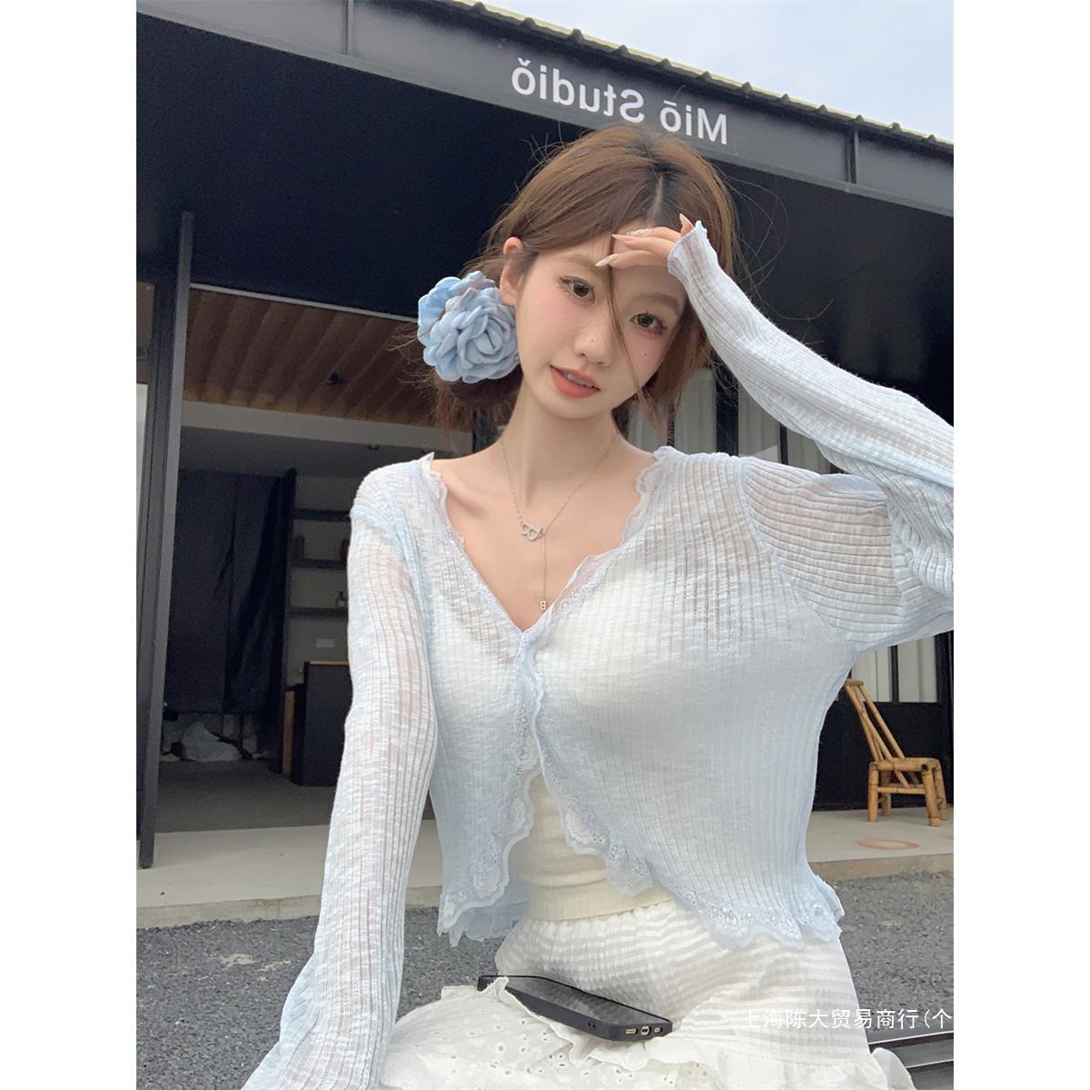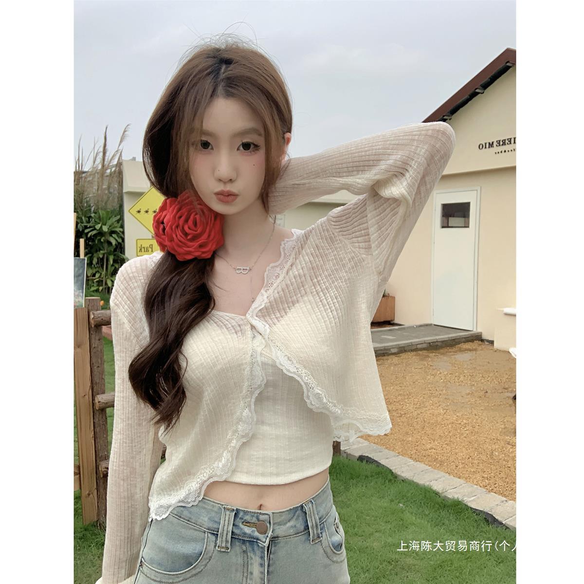 | nameOriginal | Lace-Trimmed Suspenders Top V-Neck Ice Silk Sunscreen Knitted Cardigan Thin Women's Air-conditioning Shirt Summer Shawl Outer CD |