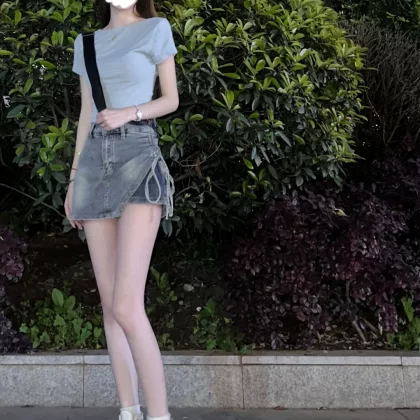 Lace-up denim women’s summer irregular skirt pants