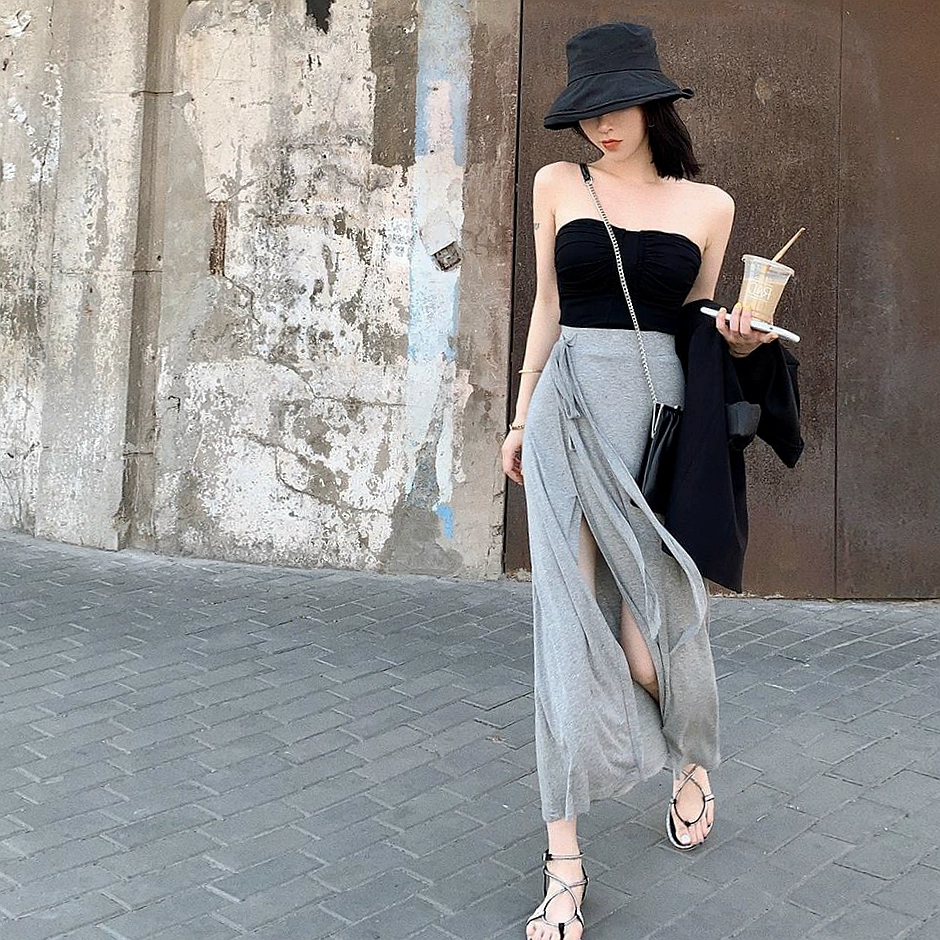 | nameOriginal | Lace-up high-waisted vintage one-piece skirt with slits |