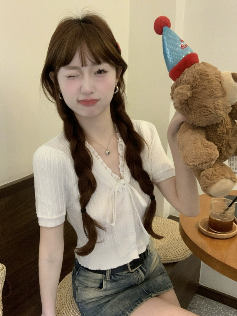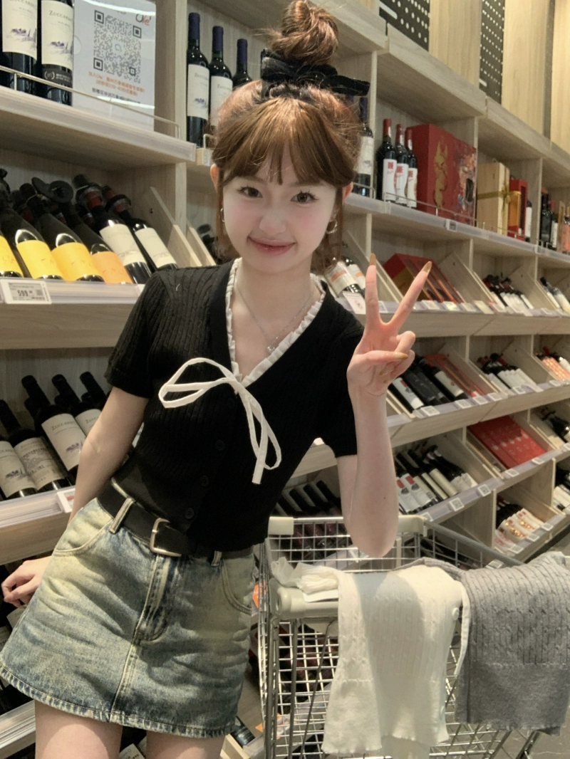 | nameOriginal | Lace-up thin summer slim-fitting chic top with short sleeves |
