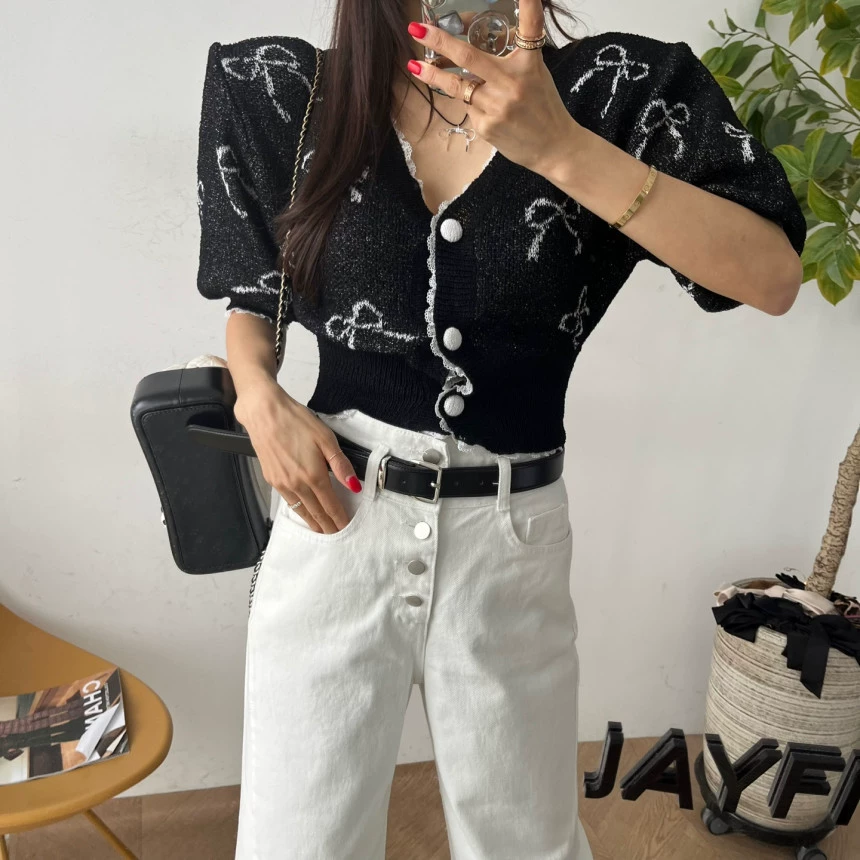 | nameOriginal | Lace V-neck buttoned waist slimming cardigan lace |