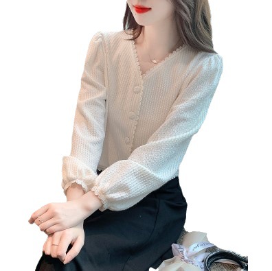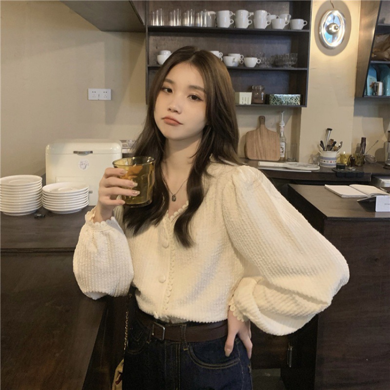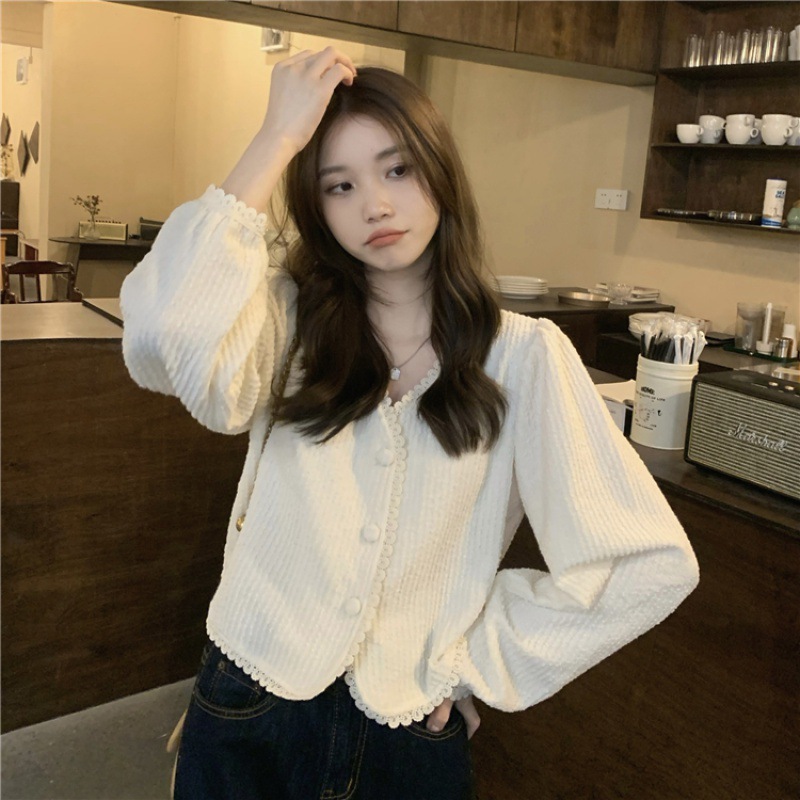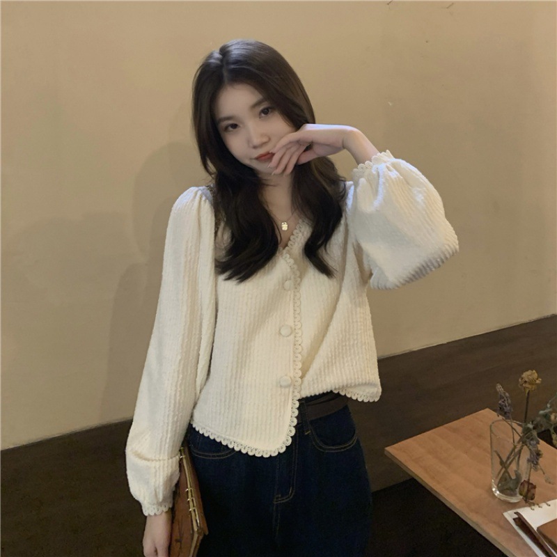 | nameOriginal | Lace V-neck puff sleeve design sense niche 2023 Spring and Autumn New Korean style sweet chic short shirt for women |