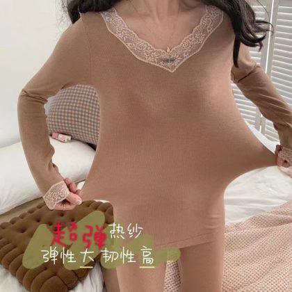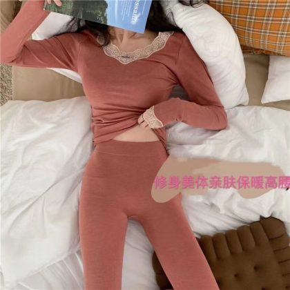| nameOriginal | Lace velvet thermal underwear women's thin wool cotton sweater winter autumn clothes long pants suit |