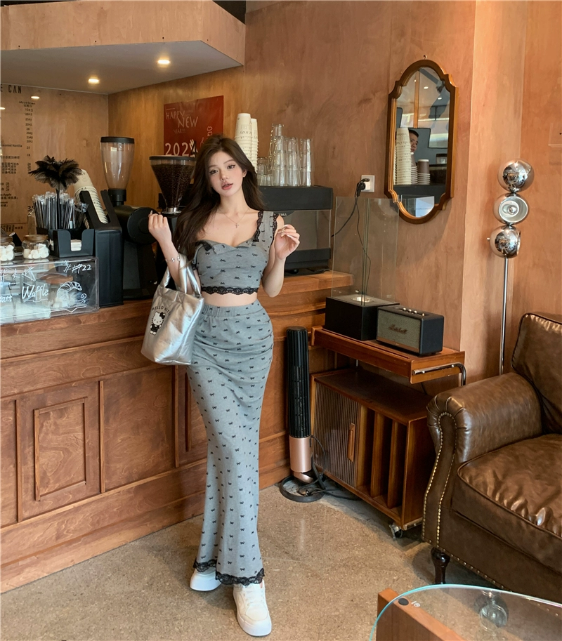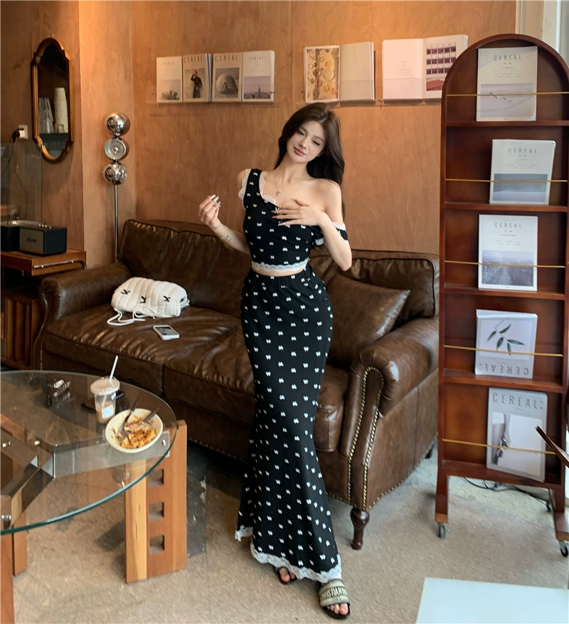 | nameOriginal | Lace women's summer fishtail two-piece set with bow print |