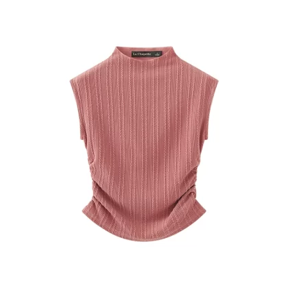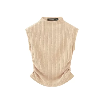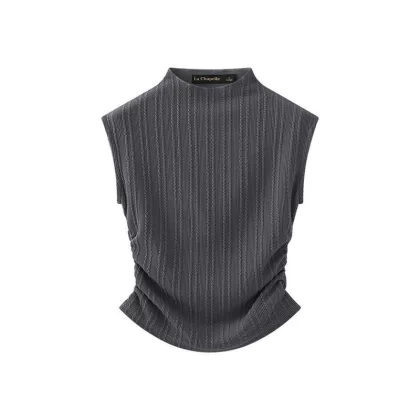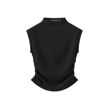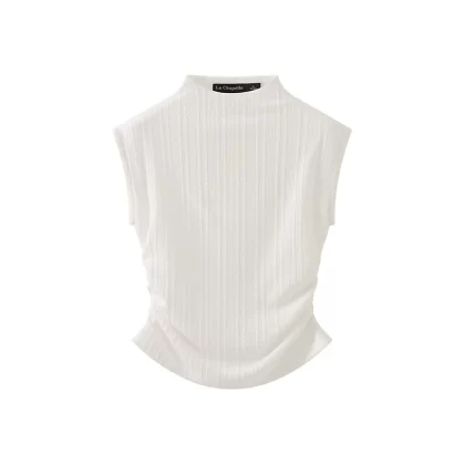 | nameOriginal | LaChapelle half-high collar small flying sleeves slim fit T-shirt women's pleated drawstring twist sleeveless top |