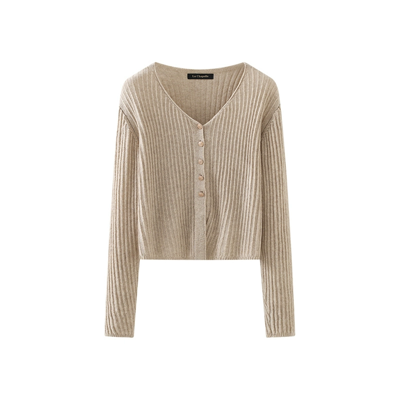 | nameOriginal | LaChapelle long-sleeved knitted cardigan women's V-neck pit solid color slim short top spring |