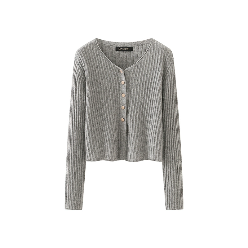 | nameOriginal | LaChapelle red knitted cardigan women's V-neck pit strip slim fit versatile short top spring |