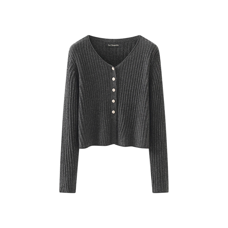 | nameOriginal | LaChapelle red knitted cardigan women's V-neck pit strip slim fit versatile short top spring |
