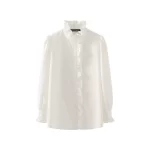| nameOriginal | LaChapelle Retro French Cross Wooden Ear Hem Stand Collar Bell Sleeve Loose Shirt Women Spring |