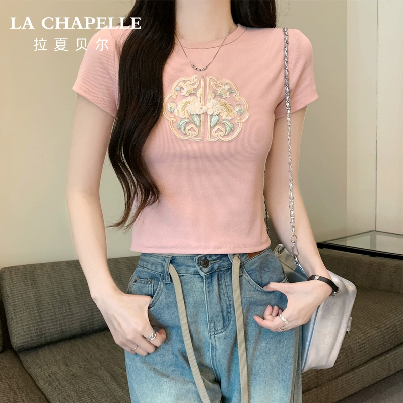 LaChapelle short-sleeved hottie slim-fitting top with embroidery