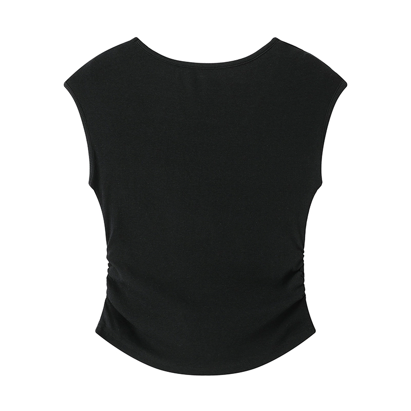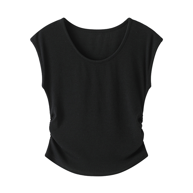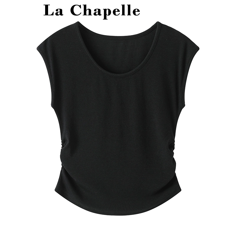 | nameOriginal | LaChapelle solid color U-neck short-sleeved T-shirt women's spring and summer new pleated simple slim top |