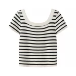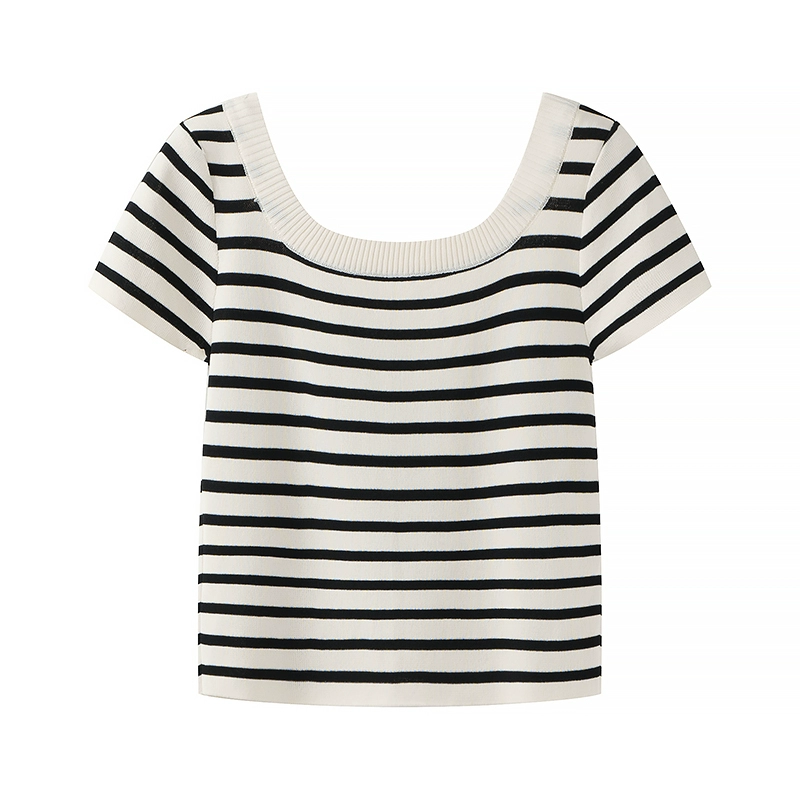 LaChapelle U-neck thin striped T-shirt knitted short sleeves