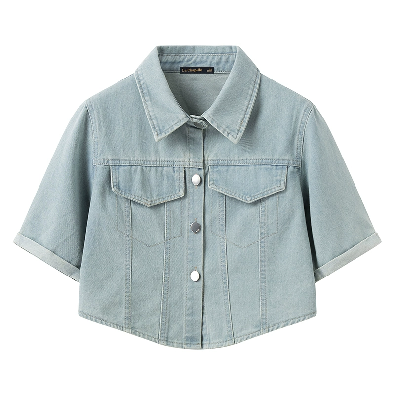 | nameOriginal | LaChapelle vintage denim jacket small shawl short sleeves |