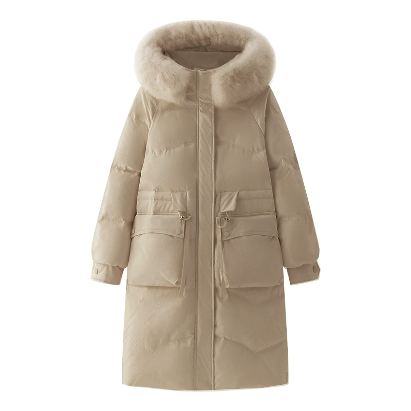 | nameOriginal | LaChapelle winter new style hooded large fur collar off-white thickened workwear mid-length cotton coat for women |