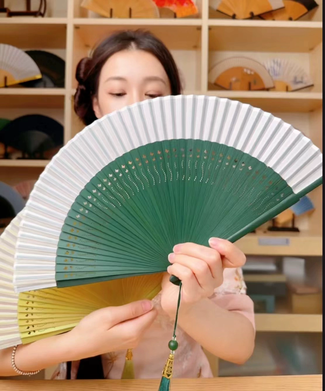 | nameOriginal | Ladies Green Folding Summer Cheongsam Portable Fan |