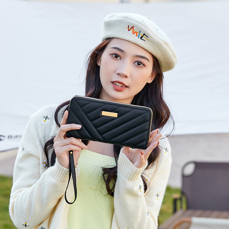 | nameOriginal | Ladies long single pull wallet 2024 new twill embroidered iron hand purse casual bag a generation of hair |