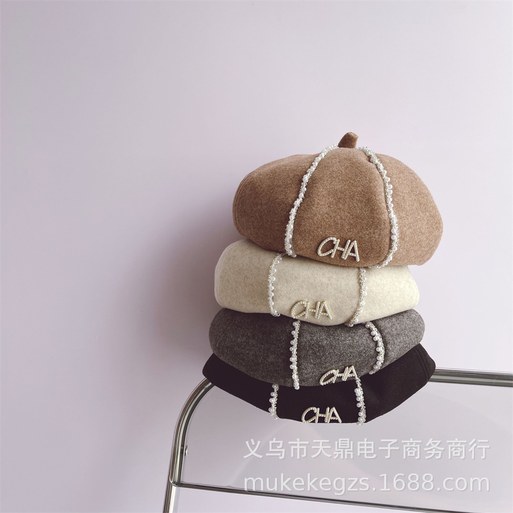 | nameOriginal | Lady Style Children's Pearl Lace Pumpkin Hat Stylish Girl Baby CHA Painter Hat Fashion Hat Beret |