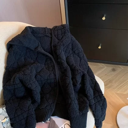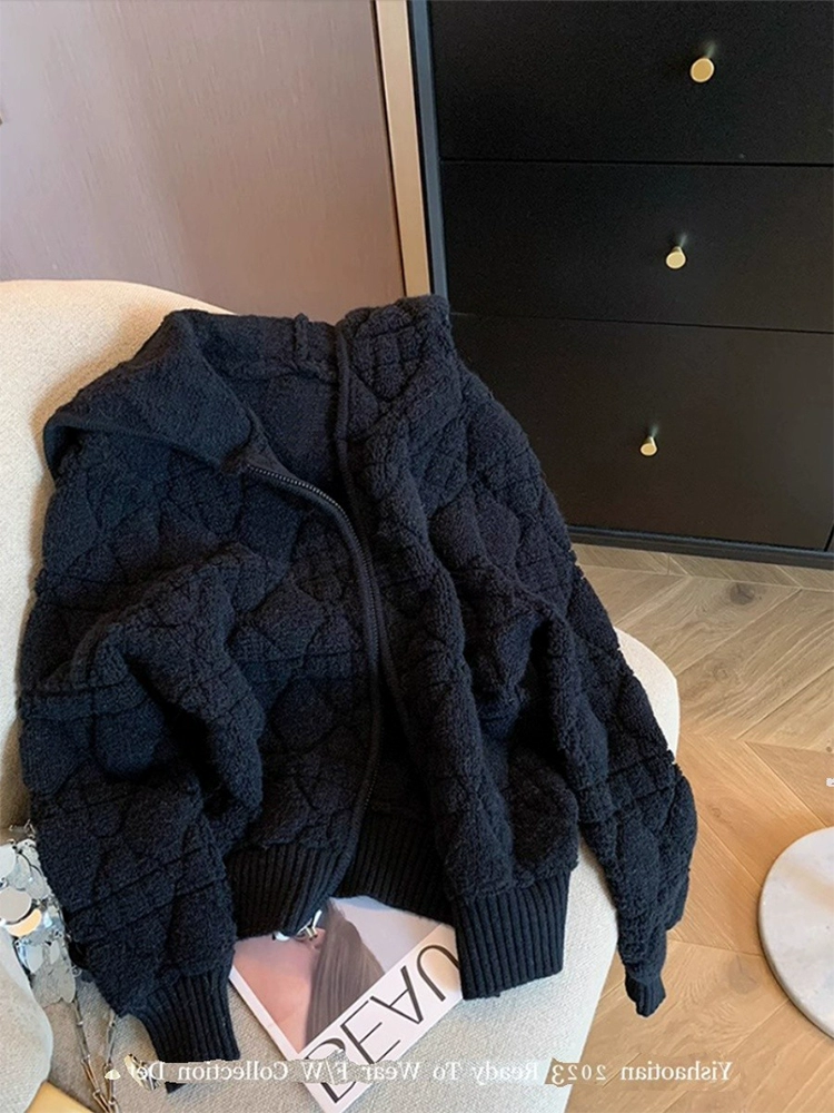 | nameOriginal | Lai Xiaoqi black rhombus zippered cardigan knitted jacket |