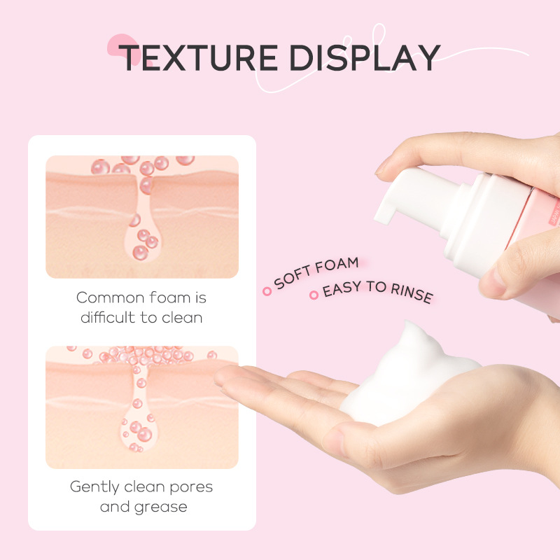 LAIKOU cherry blossom Cleansing Mousse 100ml cleansing mild hydrating dense foam facial cleanser cross-border
