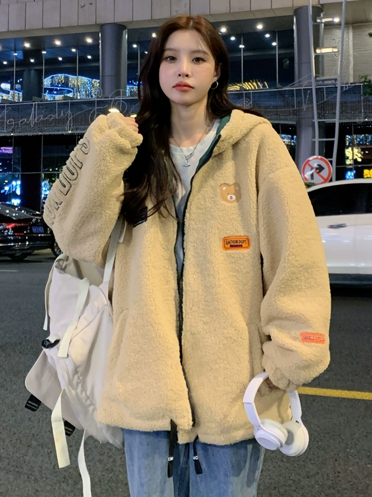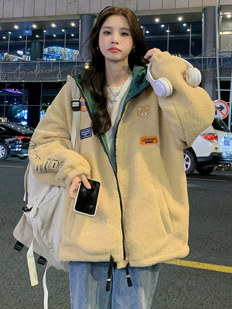 | nameOriginal | Lamb plush coat women's 2024 new middle school students and older children autumn and winter mid-length plus velvet thickened cotton coat |