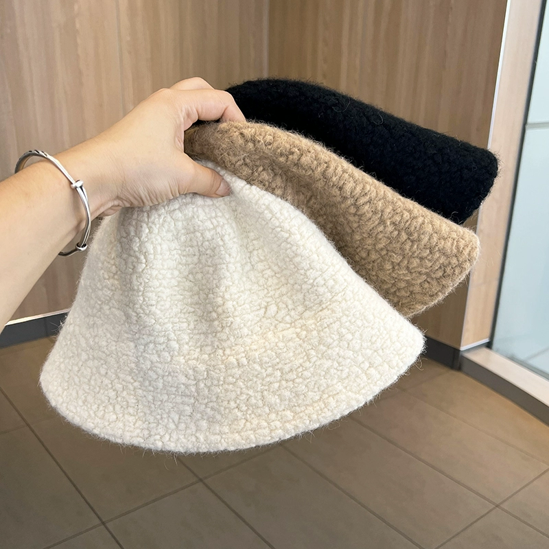 | nameOriginal | Lamb velvet bucket hat for women in autumn and winter Japanese style warm fisherman hat showing face small fashion particle plush basin hat trendy |