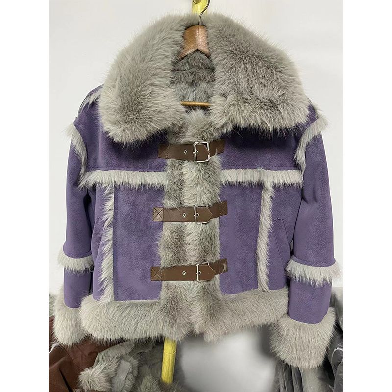 Lamb wool coat women’s winter 2024 new fur integrated motorcycle clothing small thickened lamb wool top