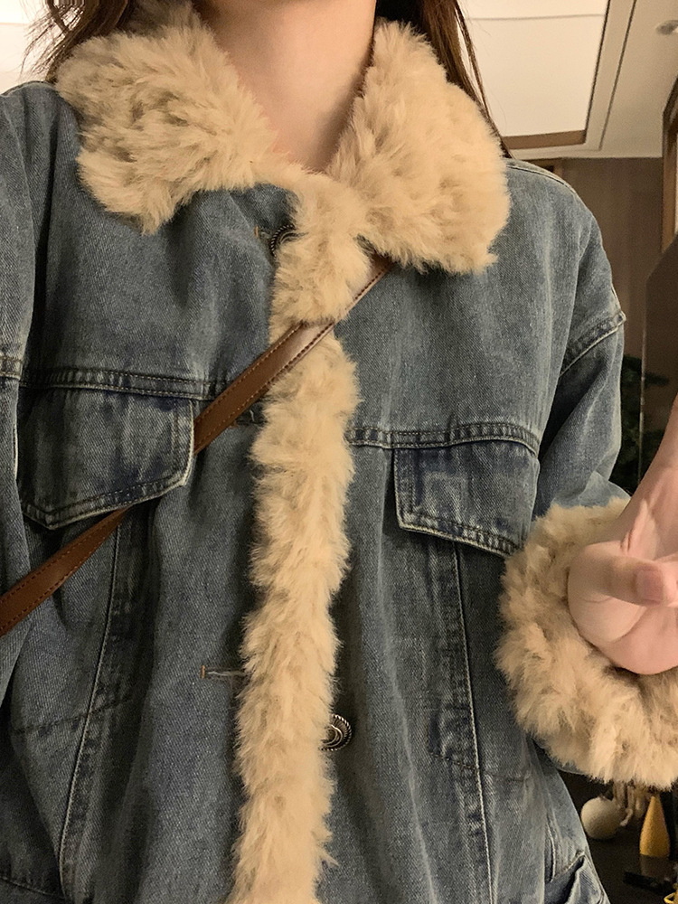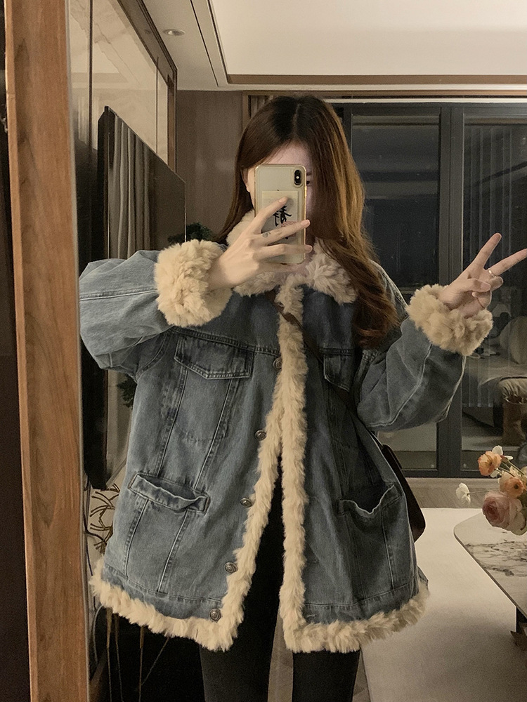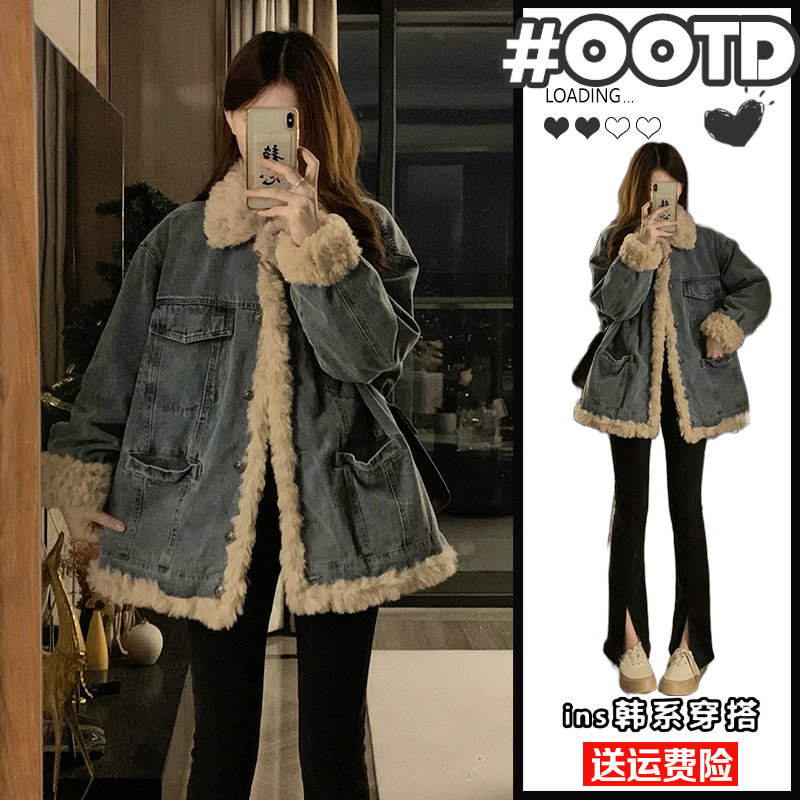 | nameOriginal | Lamb wool Denim coat for women autumn and winter 2024 new popular loose plus velvet cotton clothes small thickened cotton-padded jacket |