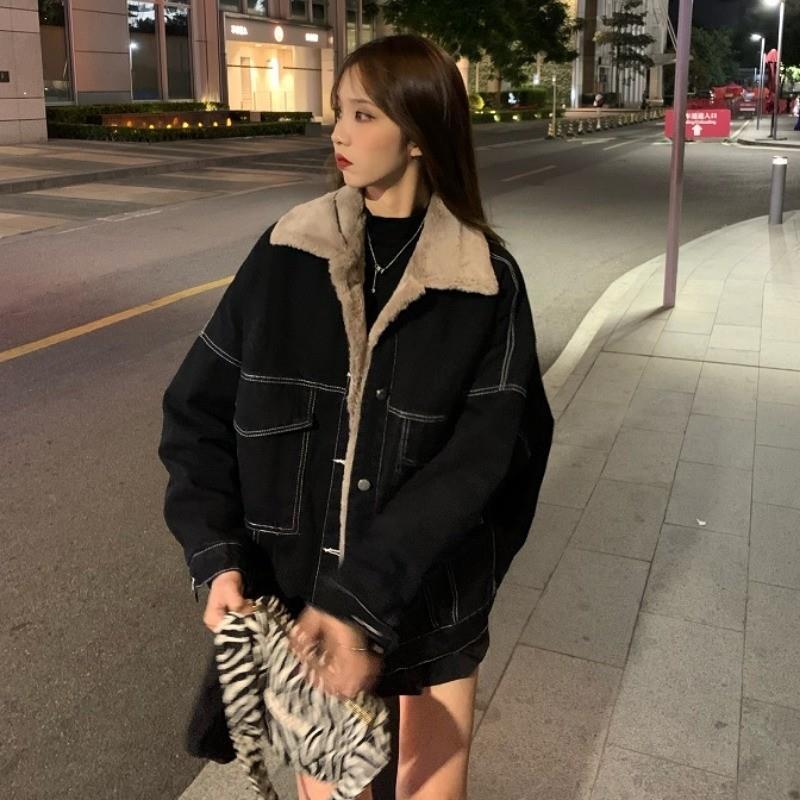 | nameOriginal | Lamb wool lapel Denim coat autumn and winter loose Korean casual workwear cotton-padded coat for women ins Hong Kong style fleece-lined thickened |