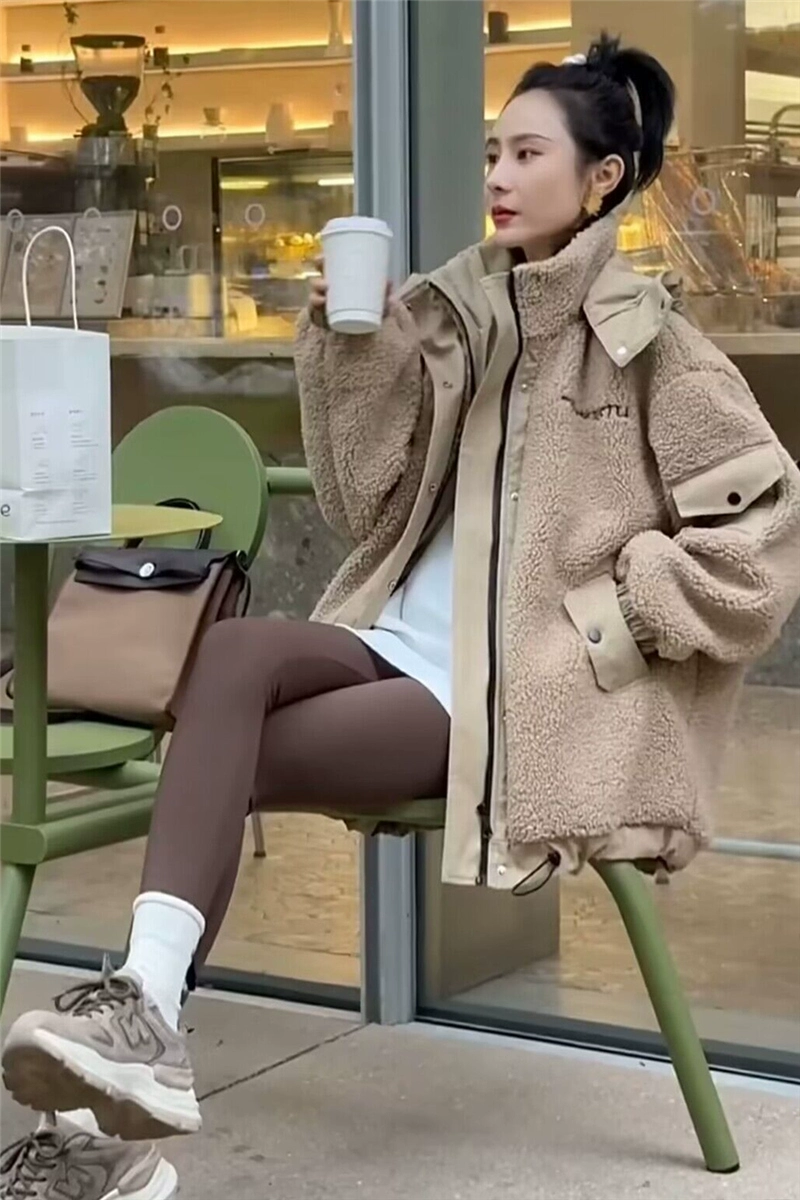 | nameOriginal | Lamb wool mid-length and cotton thickened loose work clothes |
