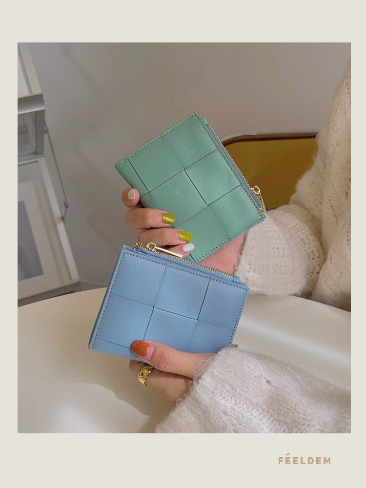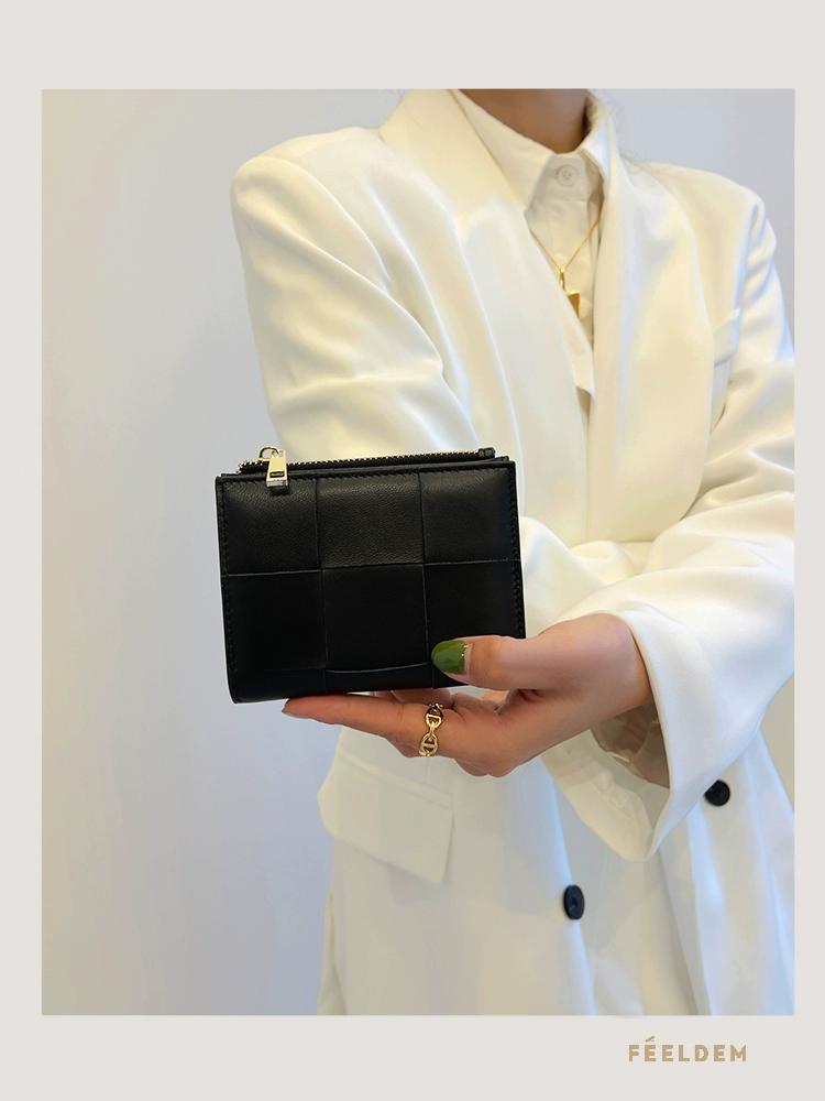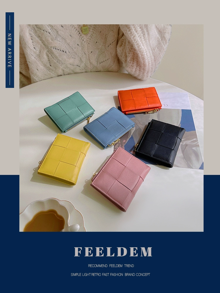 | nameOriginal | Lambskin woven wallet women's short 2023 new Japanese and Korean ins style genuine leather zipper coin purse trendy |