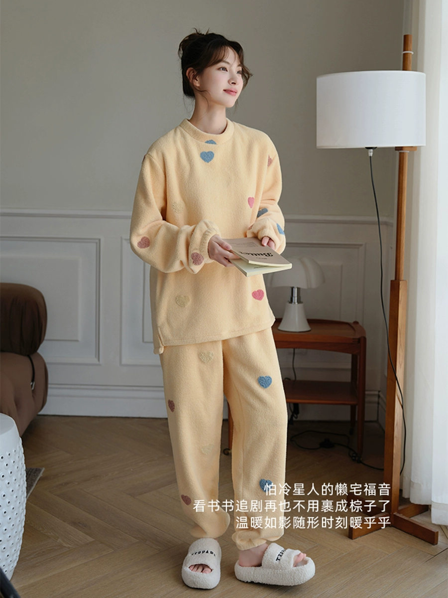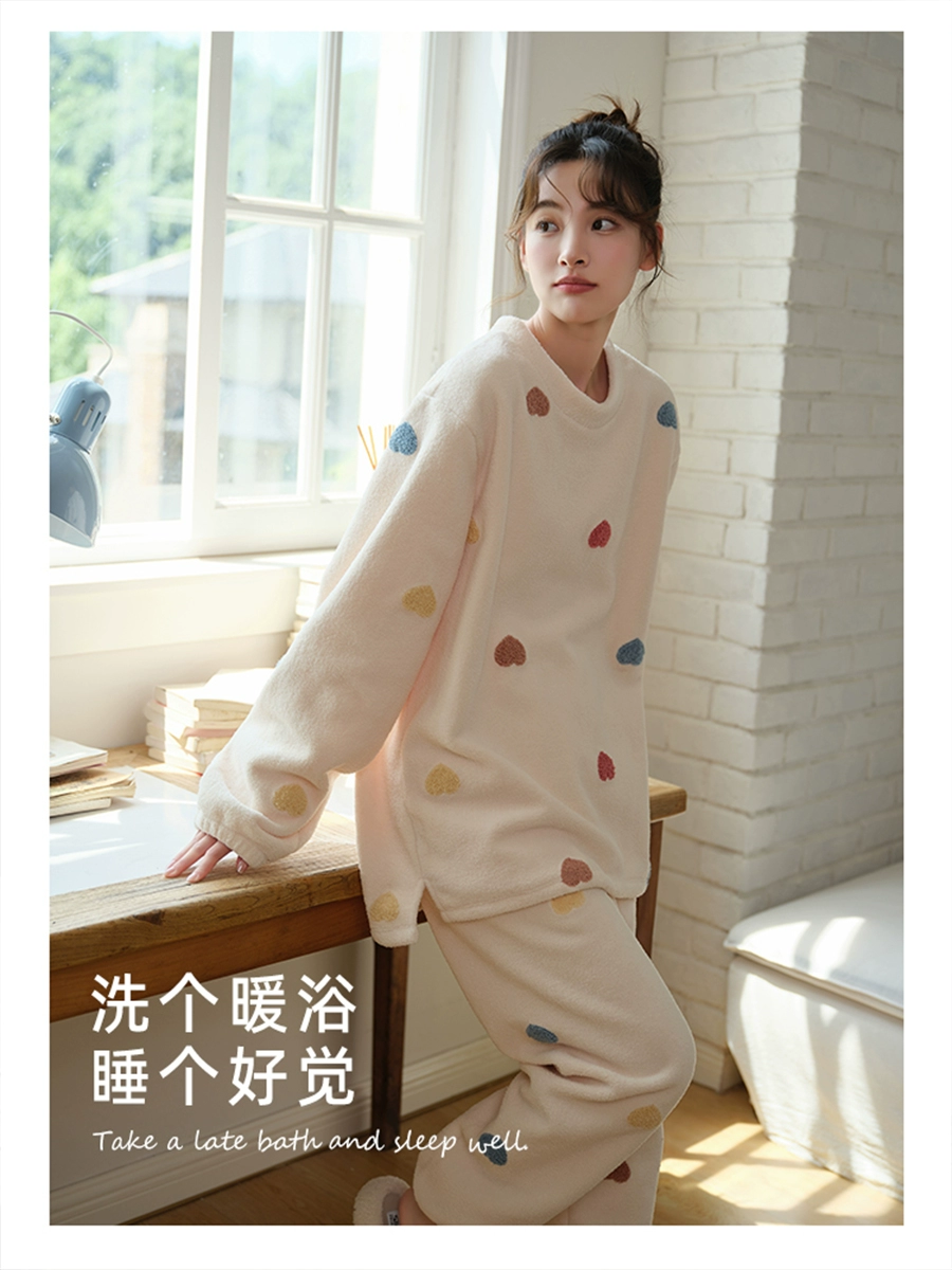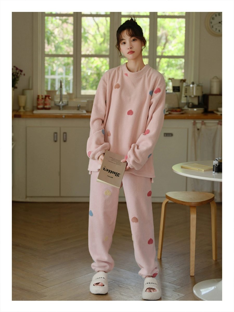 | nameOriginal | Lambsmere pajamas for women, winter plus velvet and thickening, Internet celebrity style, can be worn outside, polka dot home clothes, warm senior set |