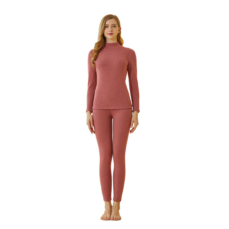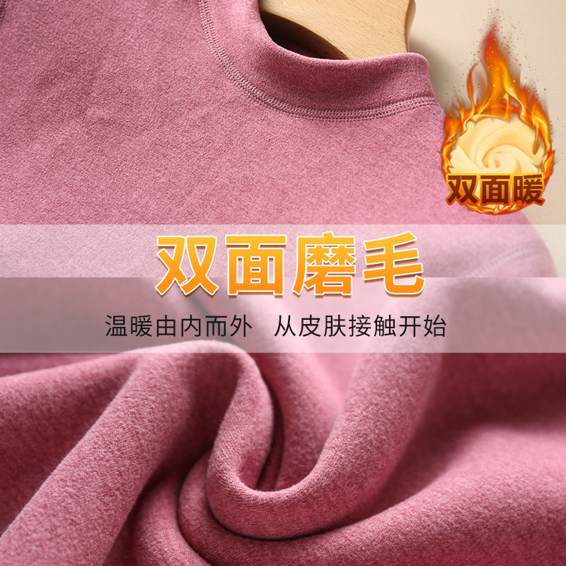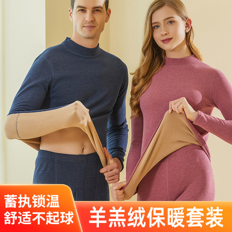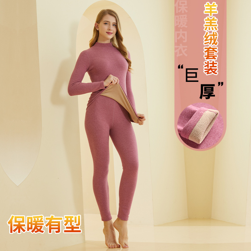 Lambswool autumn and winter suit fleece-lined thickened half turtleneck thermal underwear high elastic double-sided fleece autumn clothes long pants no Pilling