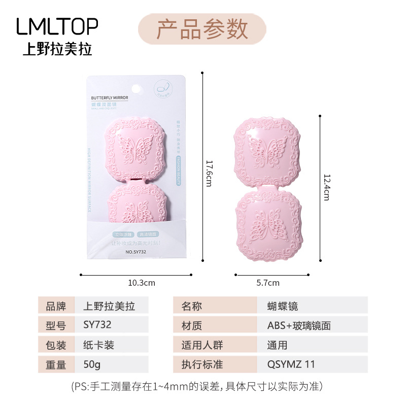 | nameOriginal | Lamera Cute Makeup Small Mirror Butterfly Double-sided Folding Mirror Portable Mini Women's Portable Mirror SY732 |