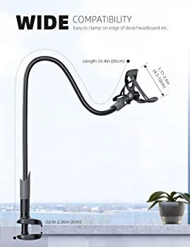 | nameOriginal | Gooseneck Phone Holder, Lamicall Phone Mount Holder for Bed – Flexible Long Arm Clamp Compatible for iPhone 12 Mini, 12 Pro Max, 11 Pro Xs Max XR X 8 7 6 Plus, Samsung S10 S9, Smartphones – Black |