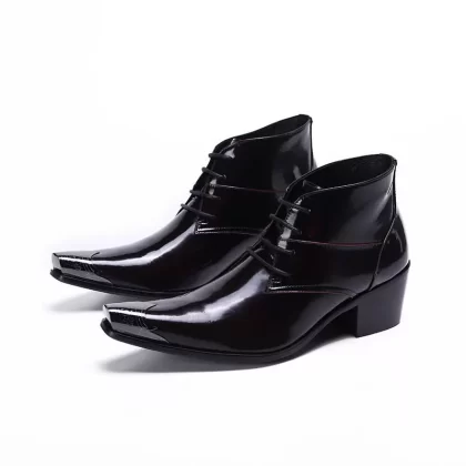 | nameOriginal | Lamus new personalized burgundy short-tube iron pointed high-heeled leather shoes hairstylist youth warm high-top men's shoes |
