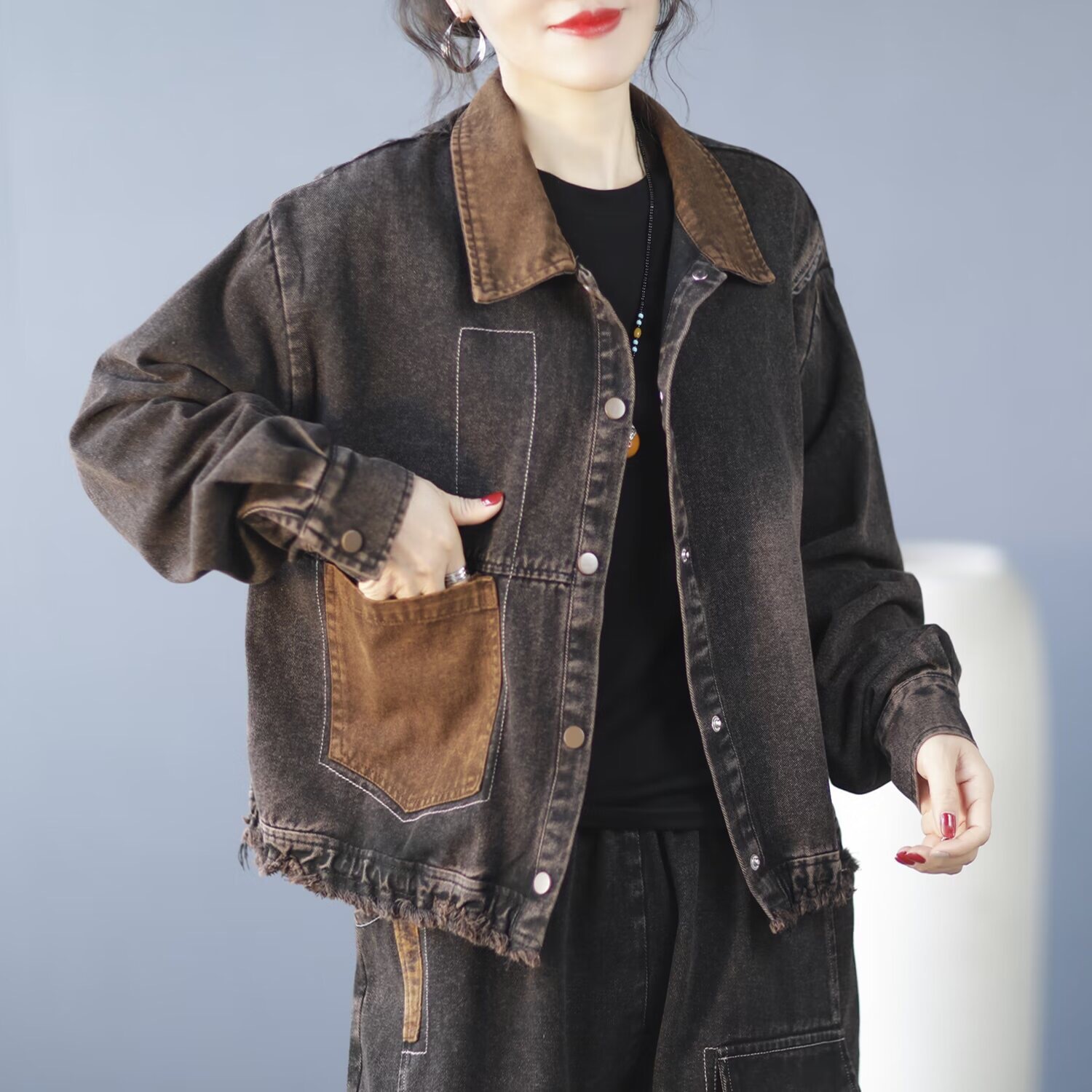 | nameOriginal | Lan Charm Denim Short Coat 2024 Spring New Padded Fur Lapel Long Sleeve Washed White Joker |