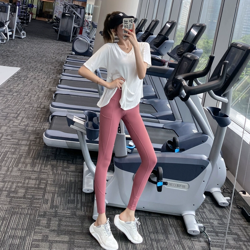 | nameOriginal | Lan pattern high waist running elastic peach outer fitness pants |