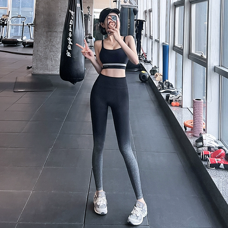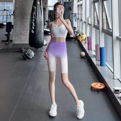 Lanwen hip lifting gradient dopamine high waist sports shorts