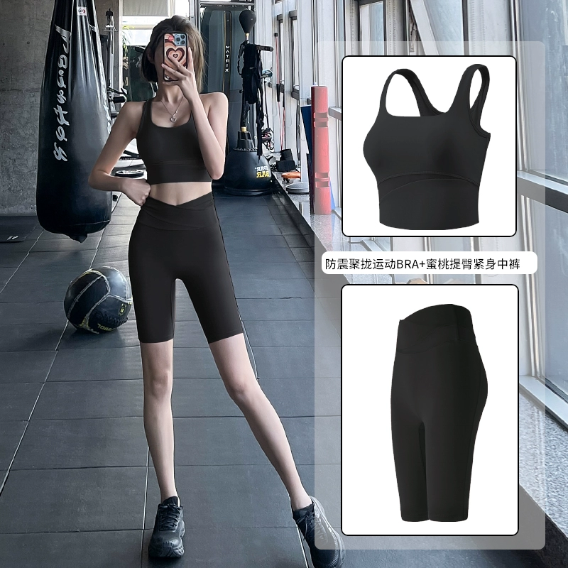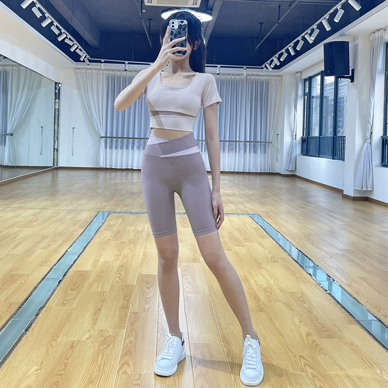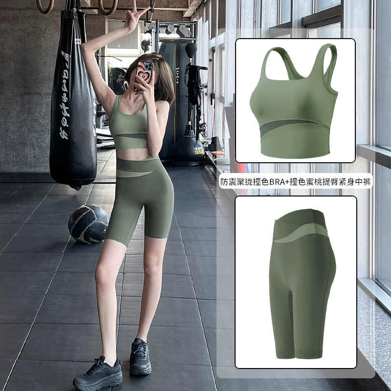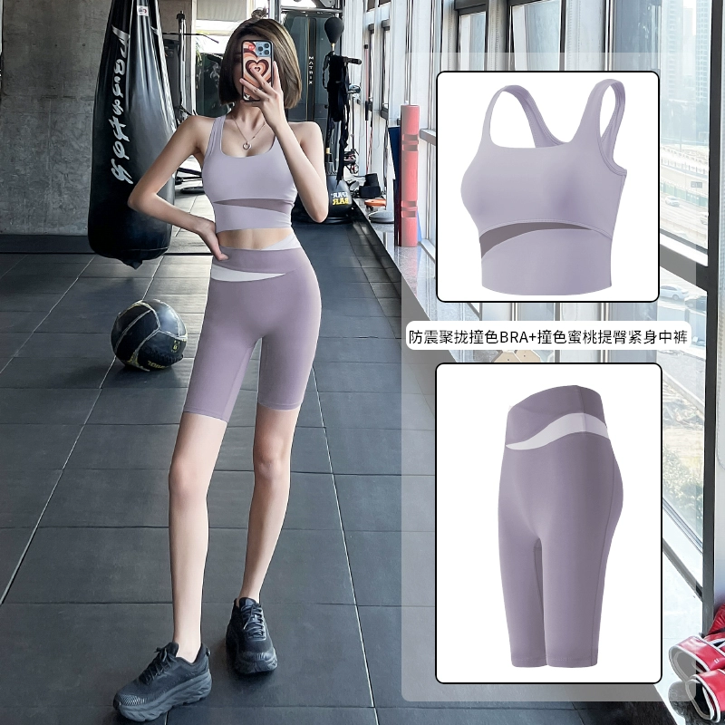 Lan pattern three-quarter length pants stretch breathable Pilates yoga clothes