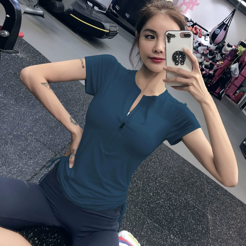Lan pattern women's elastic sports T-shirt tight short-sleeved top