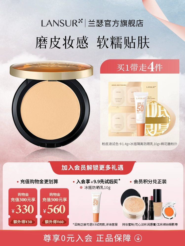 Lancer wet and dry sunscreen powder foundation, lightweight powder cream, fixed touch-up, matte soft-focus concealer, daily makeup
