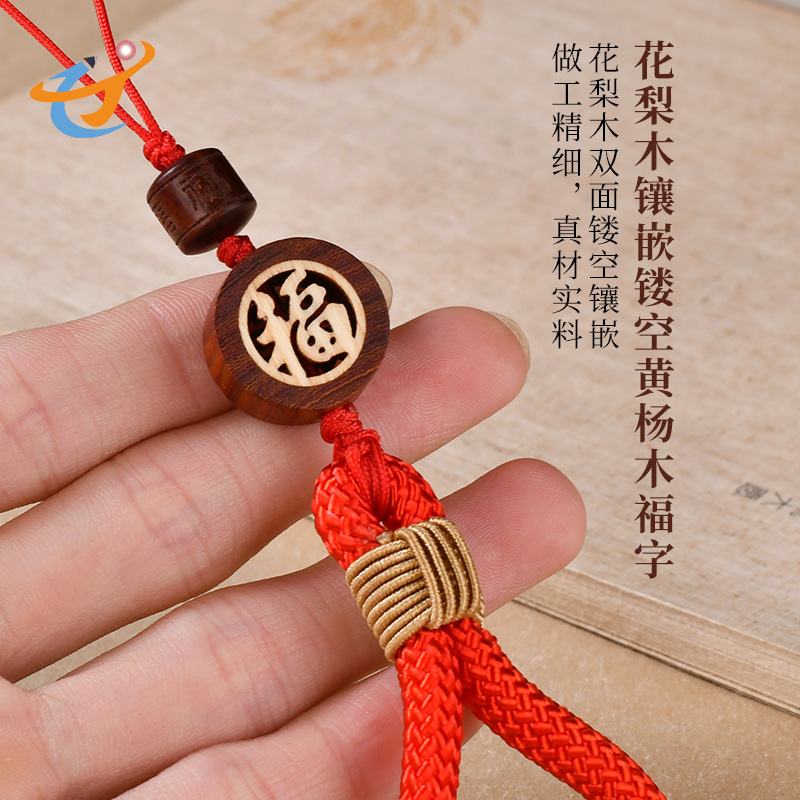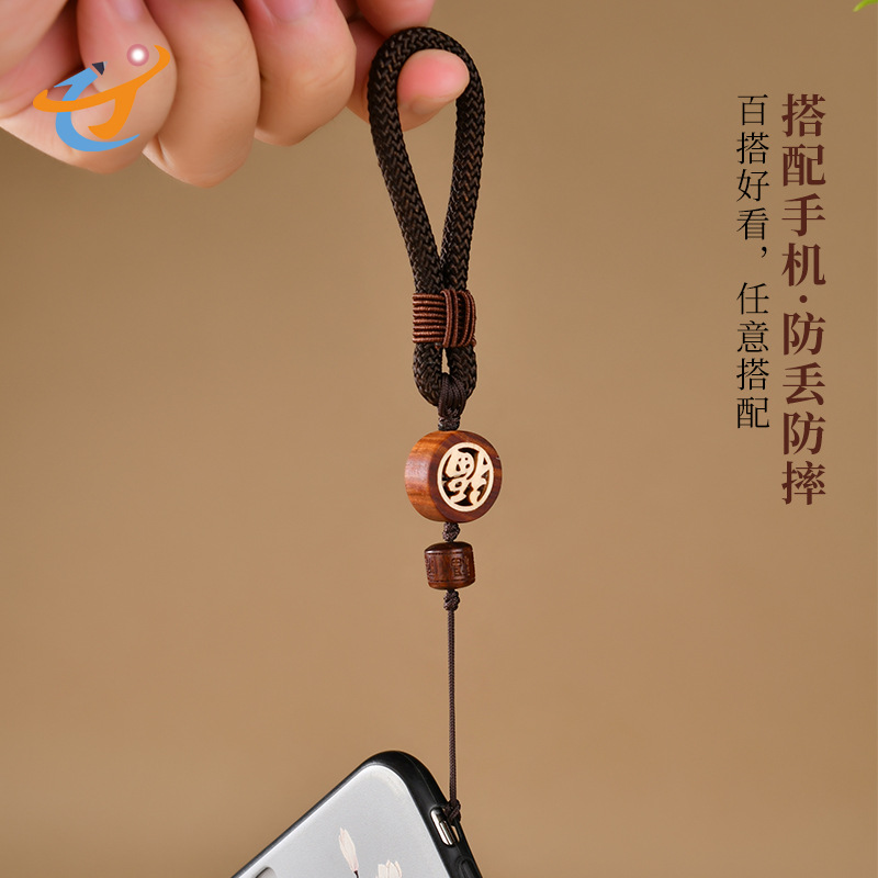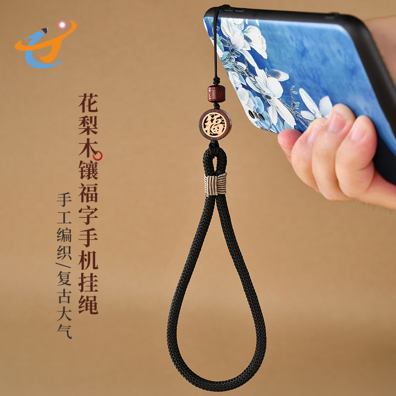| nameOriginal | Langji ancient style rosewood inlaid fu character mobile phone chain simple ring buckle lanyard anti-Lost U disk bag pendant |
