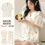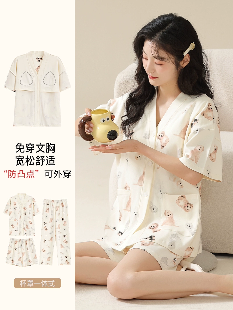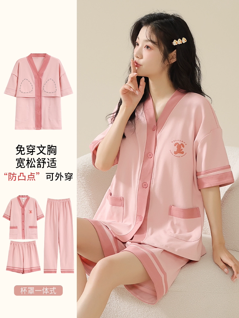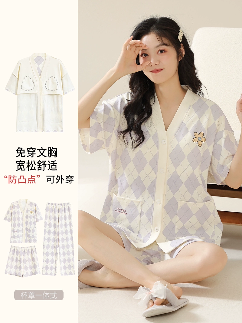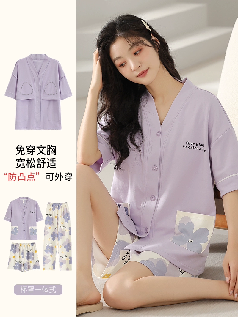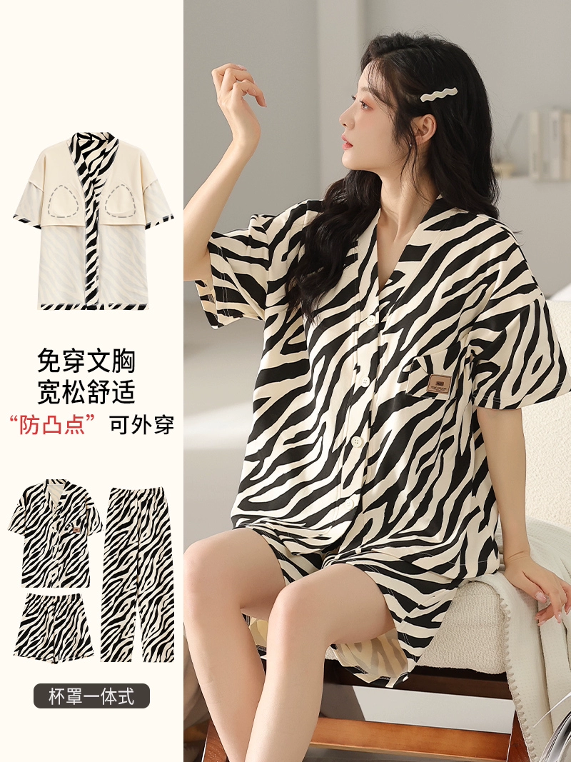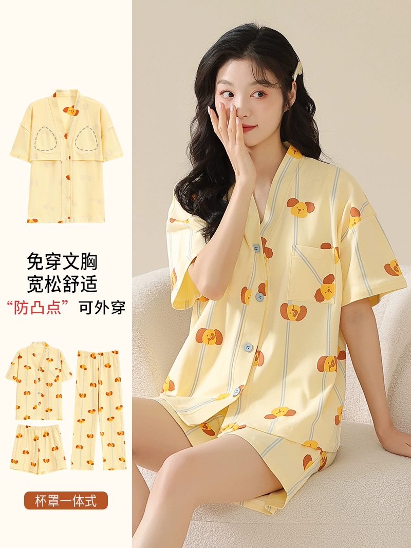 | nameOriginal | Langsha pajamas women's summer pure cotton short-sleeved shorts three-piece suit with chest pad large size casual can be worn outside home clothes |