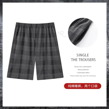 Langsha Pure Cotton Men’s Five-point Summer Large Size Pajama Pants