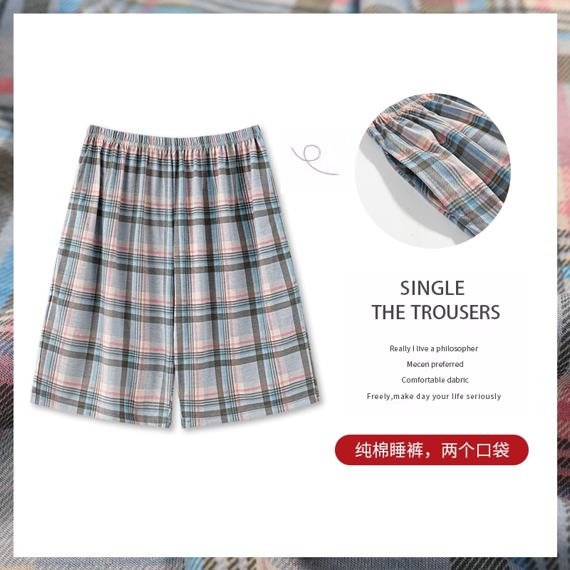 Langsha pure cotton men's five-point summer plus size pajama pants