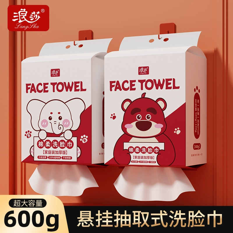 Langsha Rose Bear official authentic disposable face towel cotton soft towel 600g hanging removable wet and dry dual-use