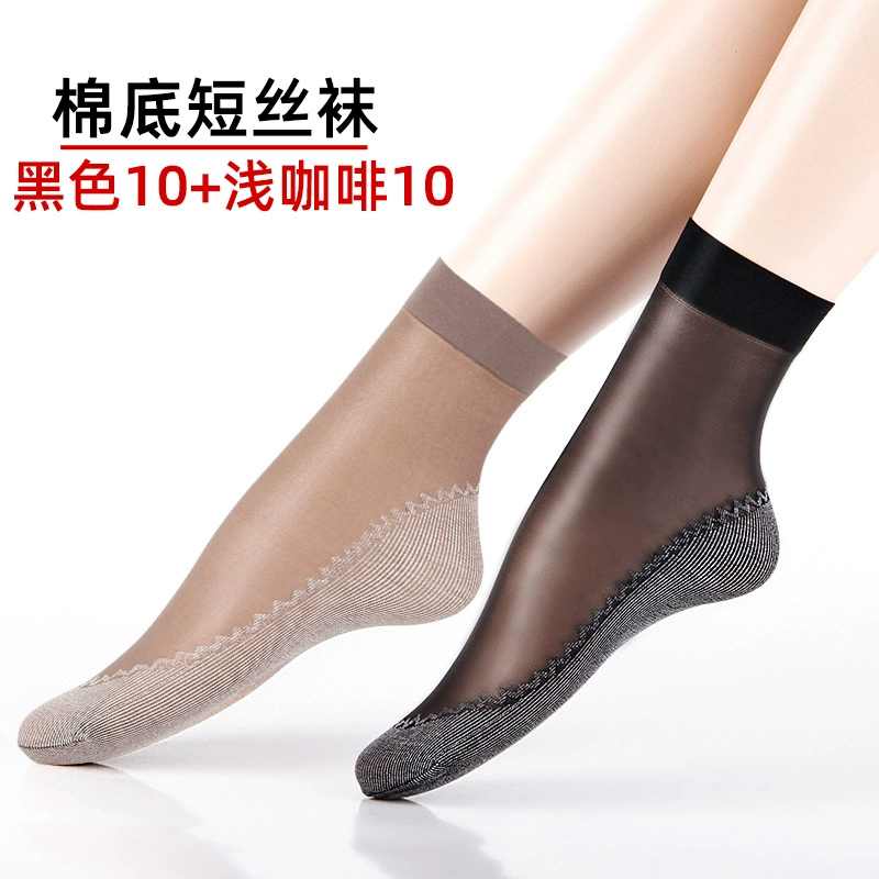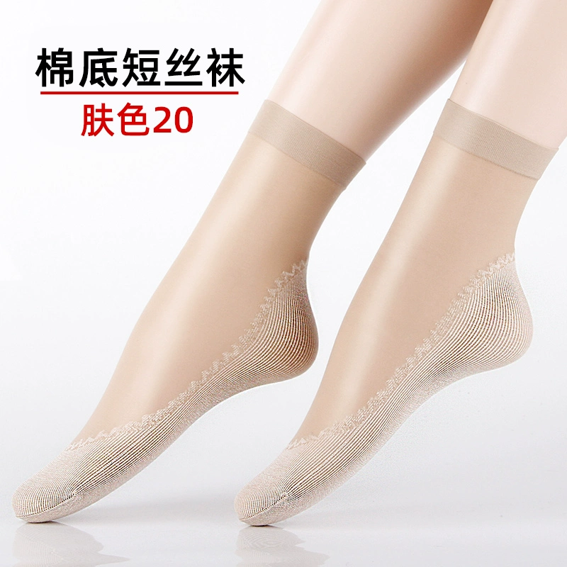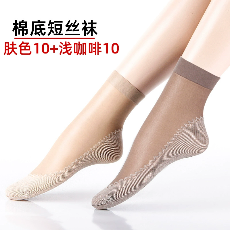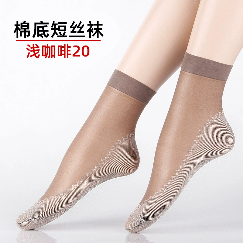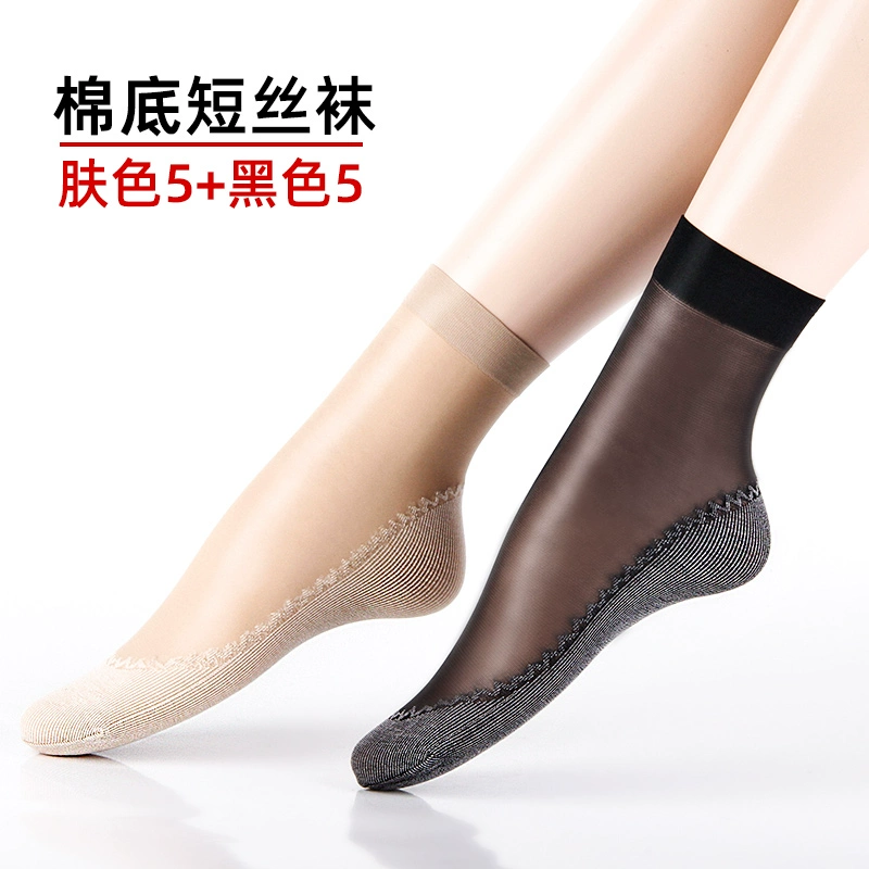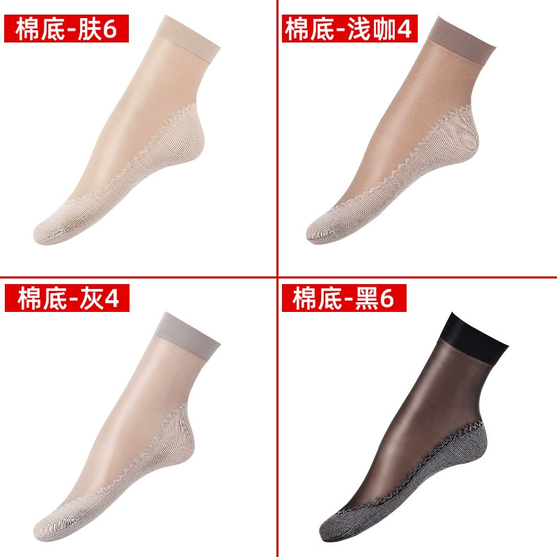 Langsha stockings women's socks summer thin crystal silk mid-tube summer dark flesh-colored wear-resistant anti-slip hook cotton bottom socks