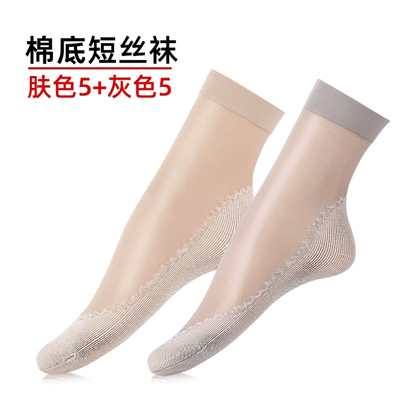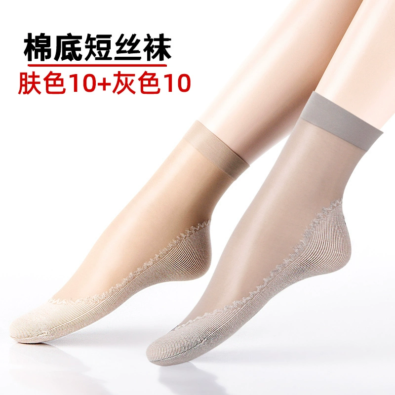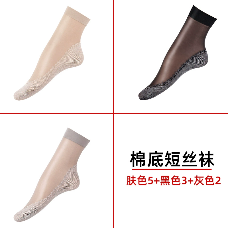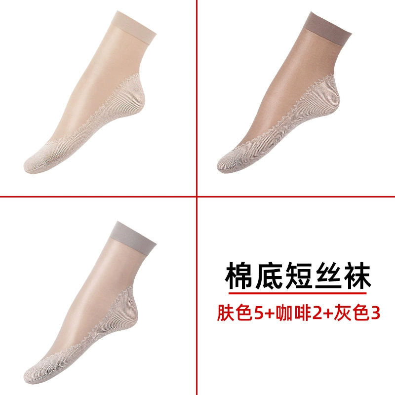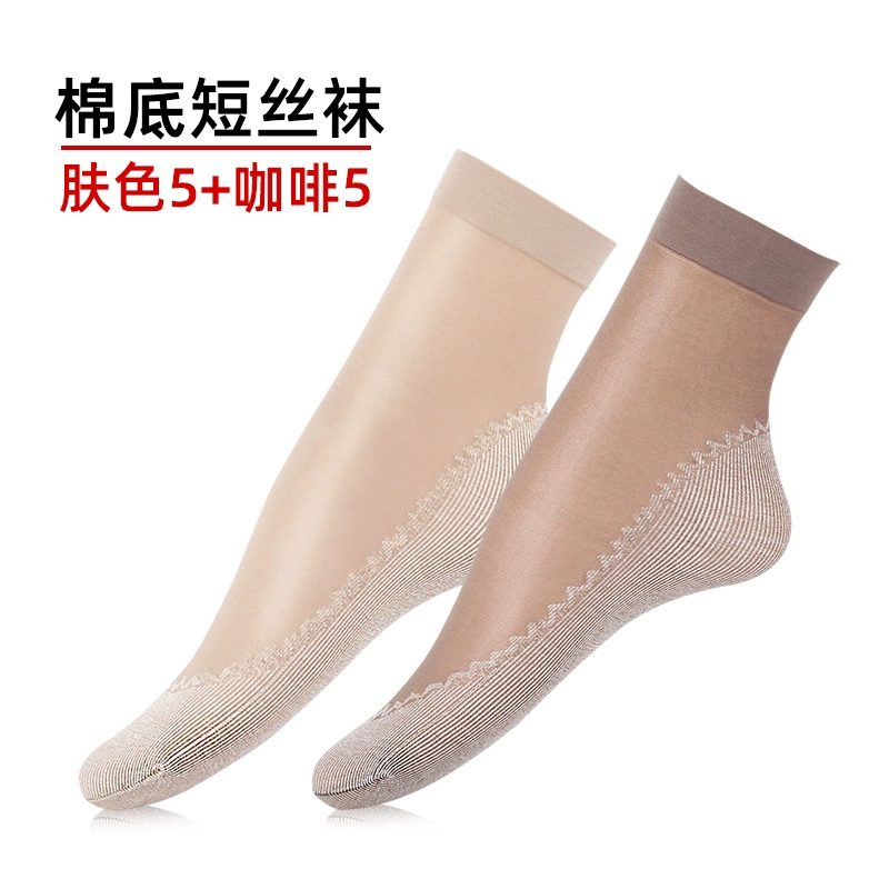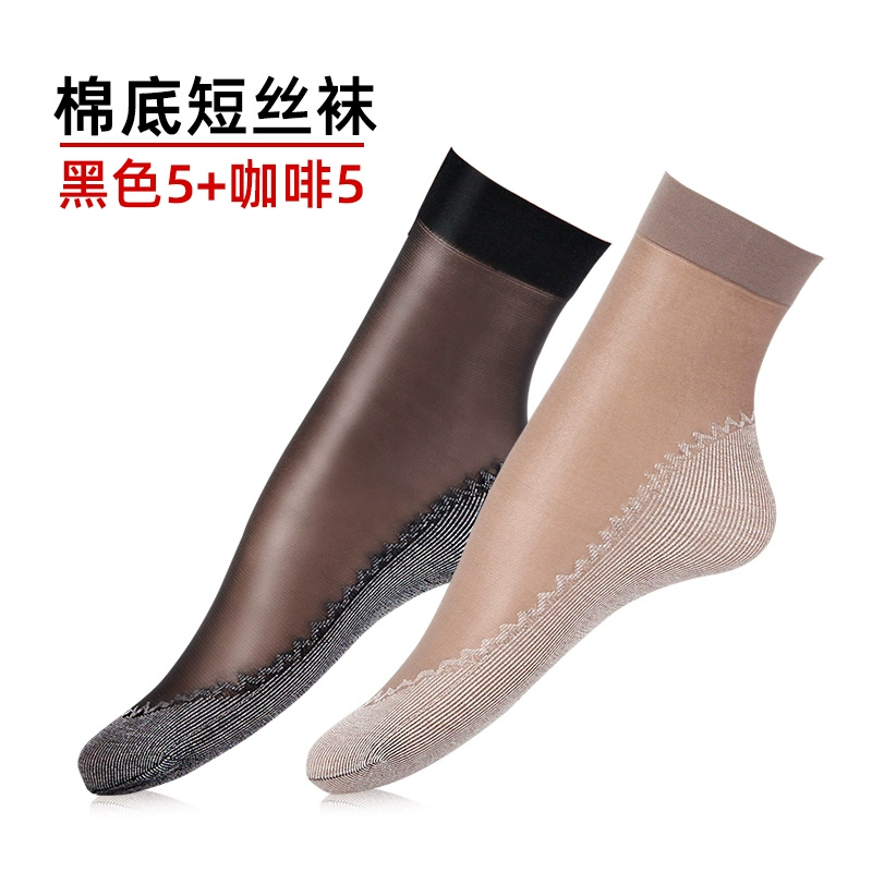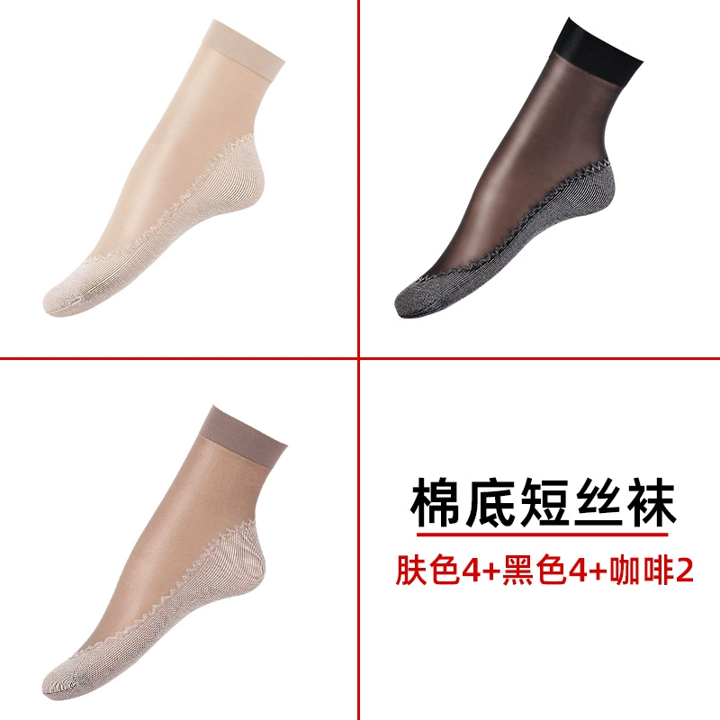 Langsha stockings women's socks summer thin crystal silk mid-tube summer dark flesh-colored wear-resistant anti-slip hook cotton bottom socks